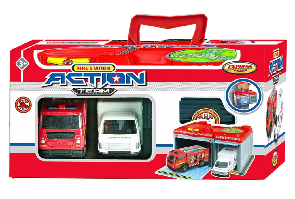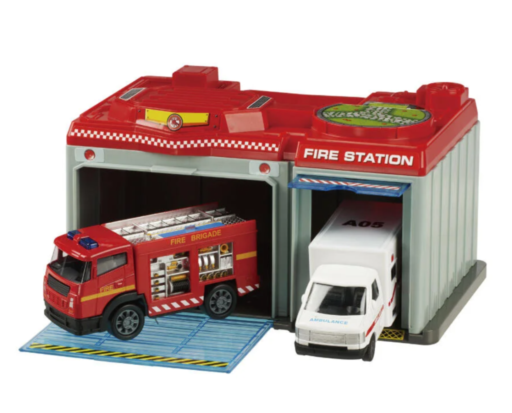 Bu set 2 adet metal araç ve taşıma çantalı itfaiye istasyonundan oluşmaktadır.